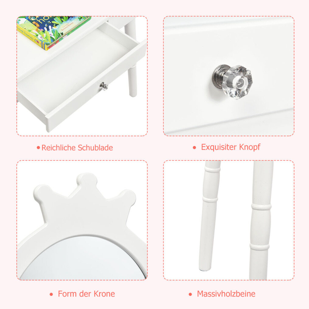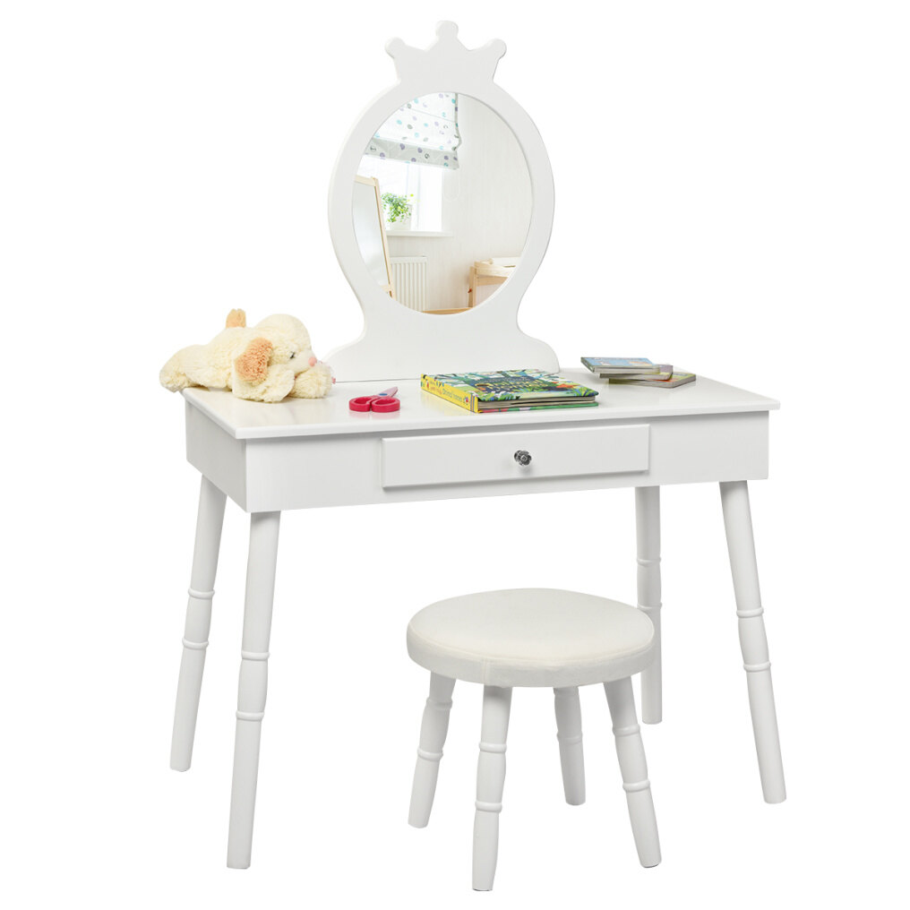 Large Drawer & Real Mirror: Equipped with a large drawer, your child can store makeup accessories in it and develop a good organizing habit. The mirror on the vanity is high definition and shows the face clearly. The shape of the mirror is a crown, and your child will love using it.