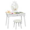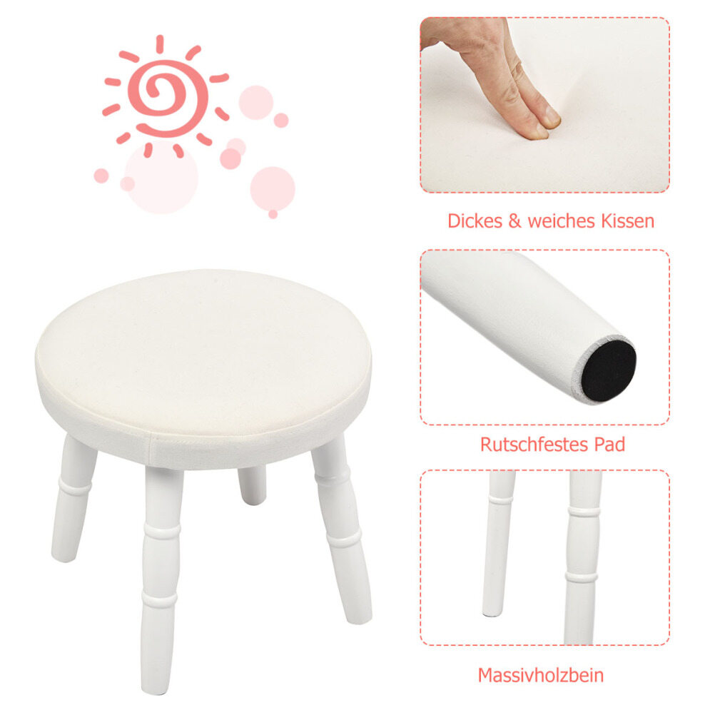 Versatile Design & Comfortable Use: The entire vanity set is white and is perfect for your child's nursery and playroom. It is also a great place for your child to study or do entertainment activities. In addition, the stool has a thick cushion so that your children can sit on it comfortably.