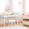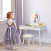 Safe Material & Sturdy Frame: The vanity and stool were designed with your child's safety in mind. Our vanity set is made of extremely strong, durable high density board and solid wood and is sturdy enough to ensure a long service life. All the paints we use are lead-free and have no strong smell, so they do not harm children's health.