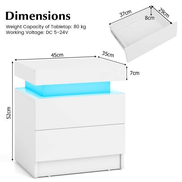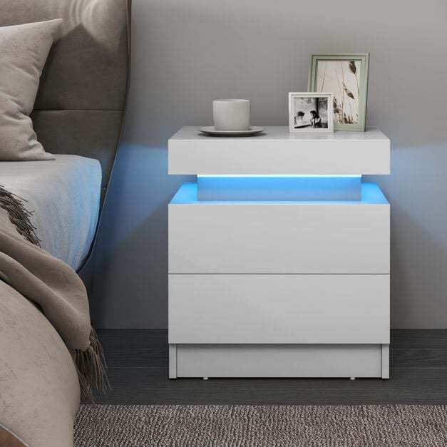 This sleek and modern marvel not only adds an extra touch of style to your sanctuary, but its built-in LED lights take things to a whole new level. With an impressive selection of 20 beautiful colors and 22 dynamic modes, and smart adjustment of brightness, you can effortlessly set the mood to match your desires. But that’s not all - this nightstand is also a storage superstar. Featuring a spacious tabletop and two large drawers, it keeps all your essentials organized and within arm’s reach. The fusion of a high-gloss black top and elegant gray faux marble drawers ensures a blend of stunning style and unbeatable durability. Assembly is a breeze, and the UV-coated tabletop surface makes cleaning and maintenance a cinch. Are you ready to transform your bedroom with a touch of brilliance? The LED nightstand awaits you. If you are looking for such a product, do not hesitate to buy it!