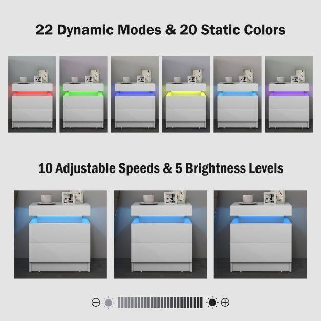 Illuminate Your Space: The LED Nightstand features built-in LED lights that add a unique and modern touch to your bedroom. There are 20 color options and 22 dynamic modes to choose from. Enjoy the soft, ambient glow that creates a cozy and inviting atmosphere.