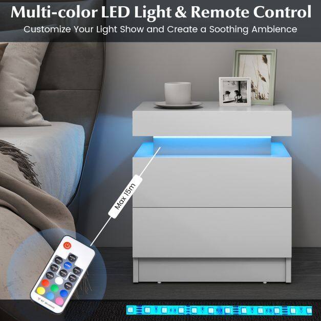 Convenient Remote Control: Easily control the LED lights with the remote control that comes with the bedside table. Adjust the brightness to create the perfect ambiance for reading, relaxing, or winding down for the night.