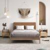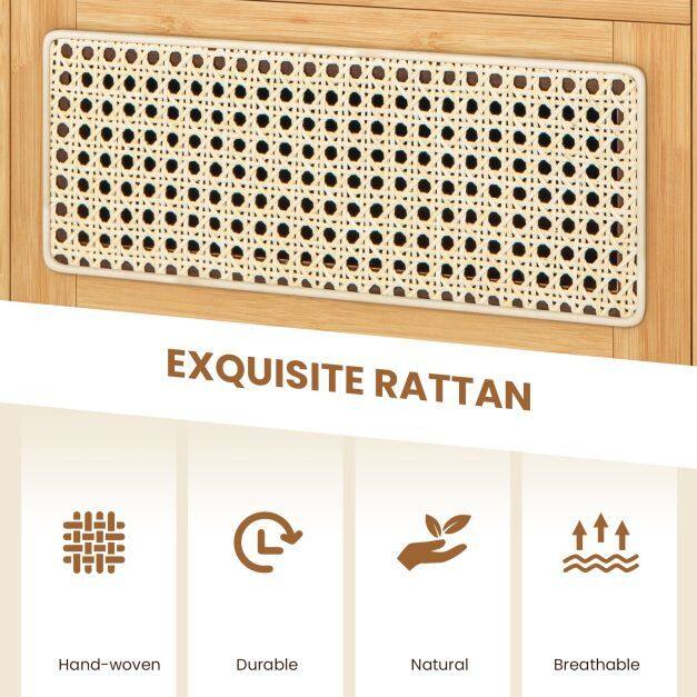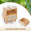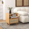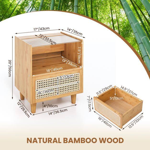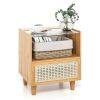 Bamboo Rattan Nightstand with Drawer and Solid Wood Legs-Natural