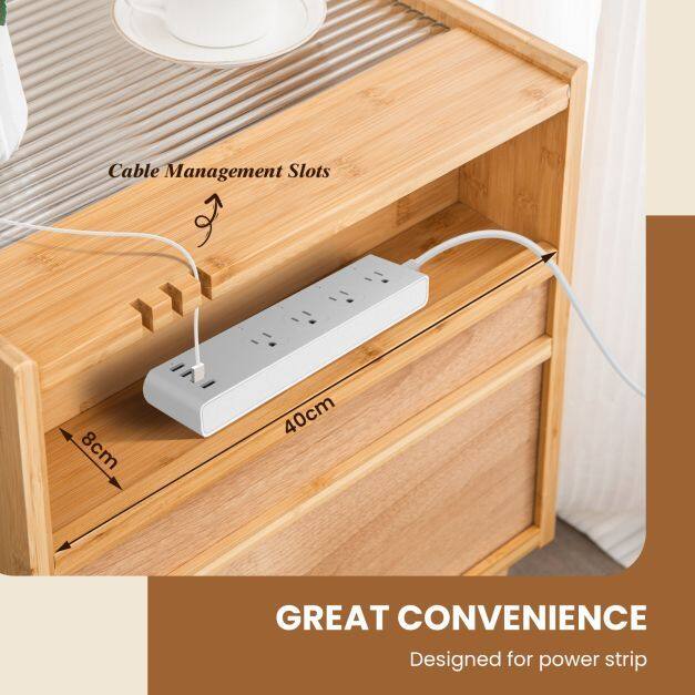 ● Hidden Storage Space: There is a hidden storage space on the back of the nightstand, which is suitable for putting your power strip, reducing desktop clutter. And the cable management slots provide great convenience as well.