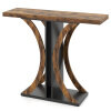 ● Eye-catching Addition: This console table features a distinctive geometric C-shaped frame, bringing a modern aesthetic to any space. Additionally, the rustic wood grain tabletop brings natural warmth and character to your room.