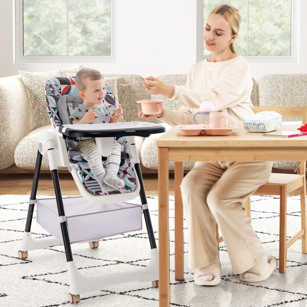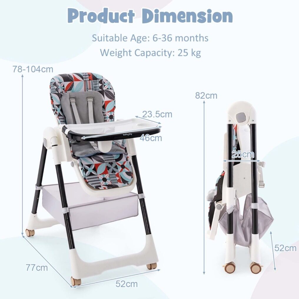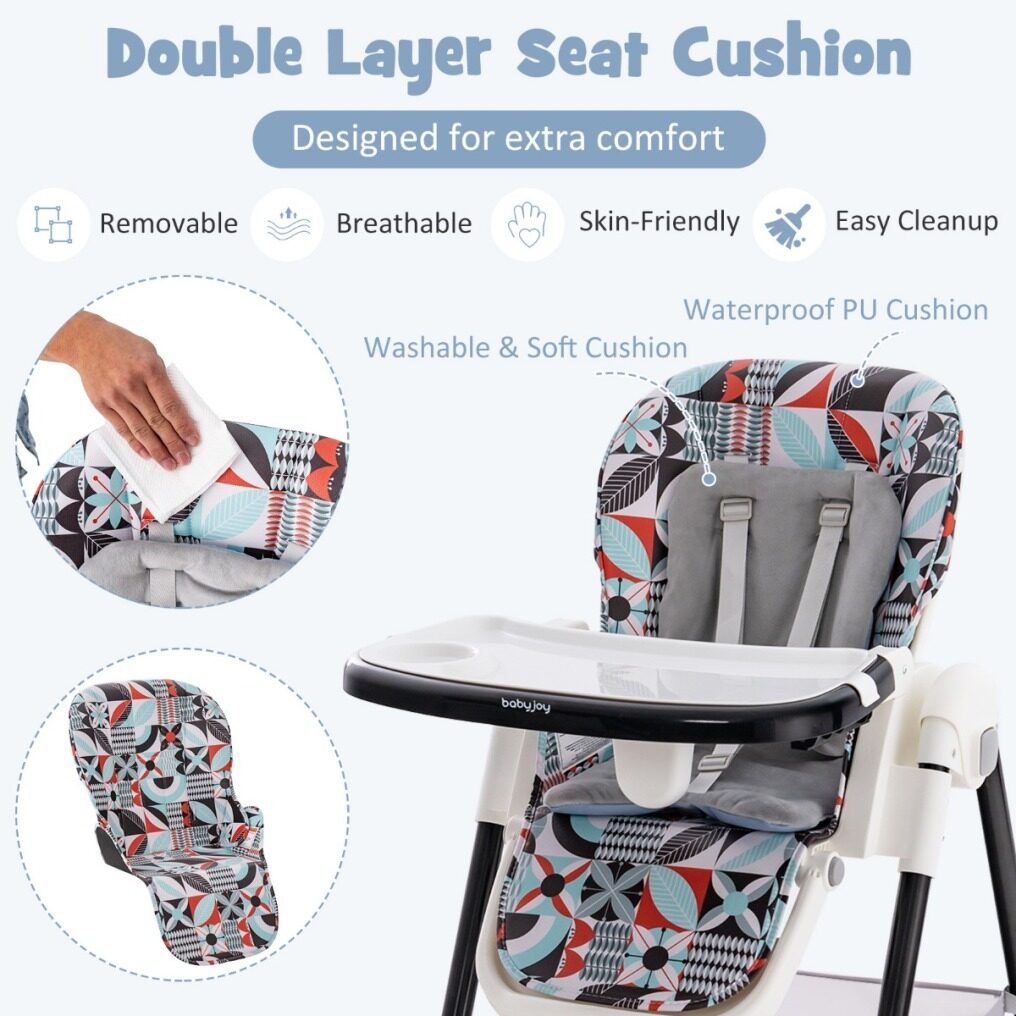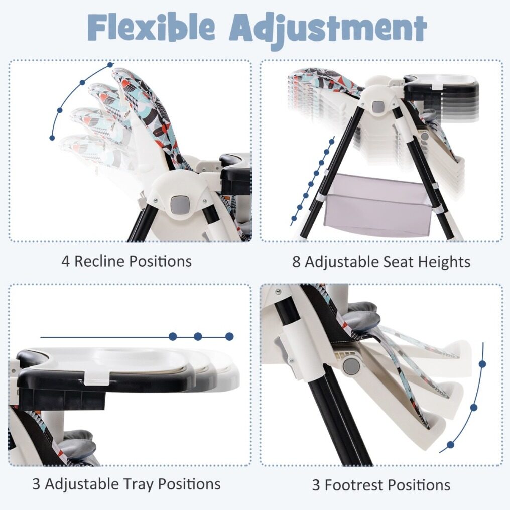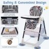 ● Multiple Adjustments for Growing Babies: Featuring 7-position heights, 3-position reclining backrest, 3-position tray, 4-setting footrest, parents can easily pull up the high chair to fit your kitchen countertop or dining chair. Every babies in different ages or heights will feel comfortable to have dinner, play and rest. Ideal gift for babies in 6-36 months.