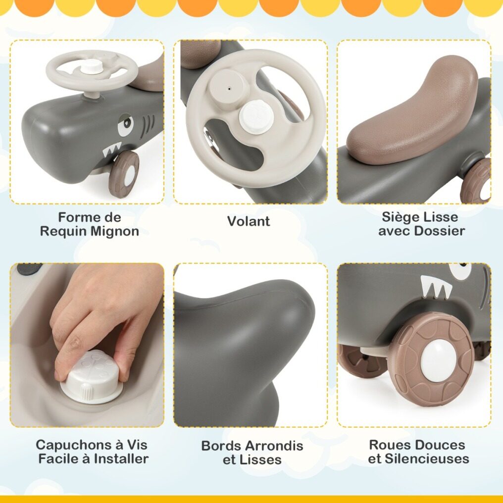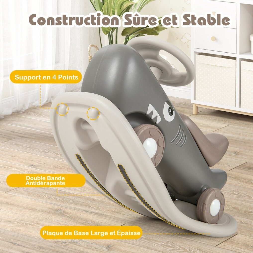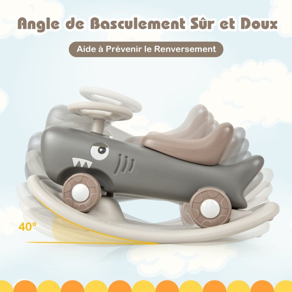 ● Lovely Outlook and Flexible Riding: With cute shark shape, this rocking horse will catch your sweeties' eyes. And there is a steering wheel for kids to better experience riding fun. Besides, 4 wear-resistant wheels also ensure smooth movement on flat surfaces.