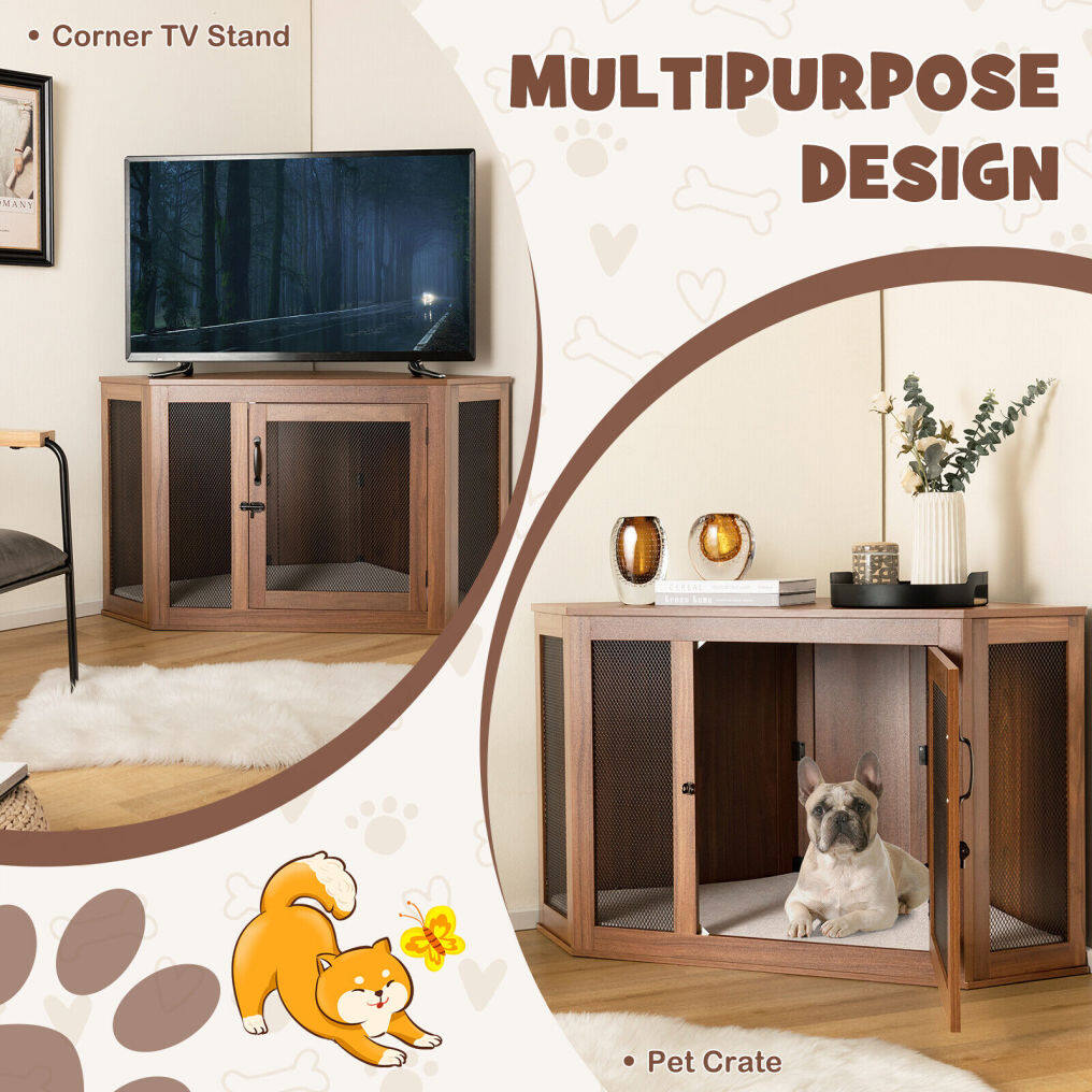 ● Pet Friendly Design: Equipped with a soft and cozy cushion, the corner dog cage can provide optimal support for your furry friends to sleep and relax comfortably. Besides, the wire mesh will leave enough space for ventilation, thus your pets won't feel stuffy.