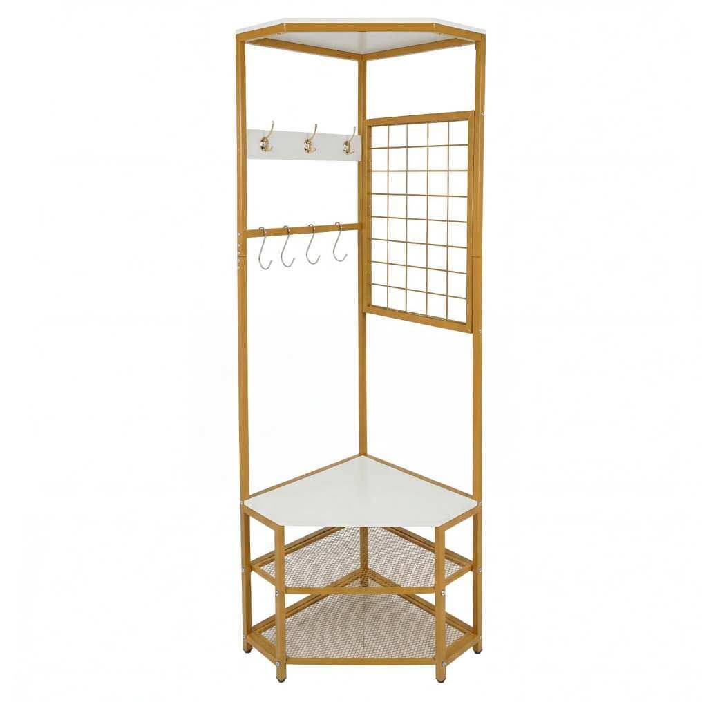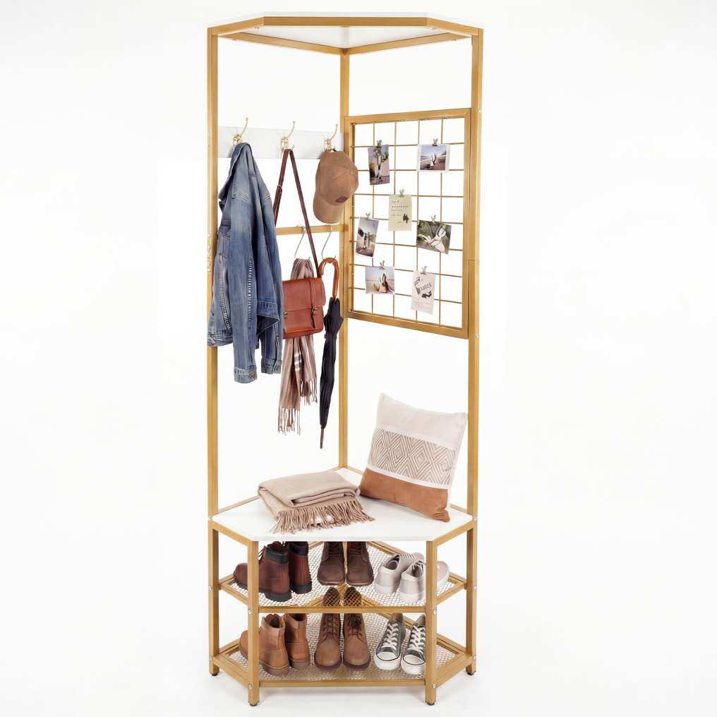 Efficient Use of Corner Space: Featuring a 90-degree angle, this 4-tier corner coat rack snugly fits into corners, making the most of limited space while adding a stylish touch to your entryway. Its clever structure transforms unused corners into highly functional storage areas without cluttering your room.