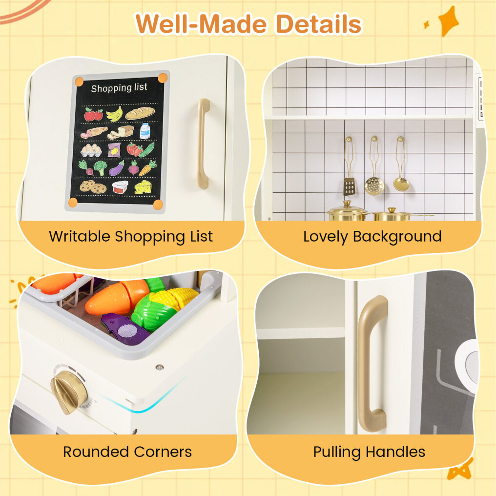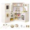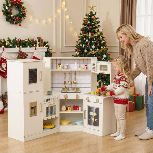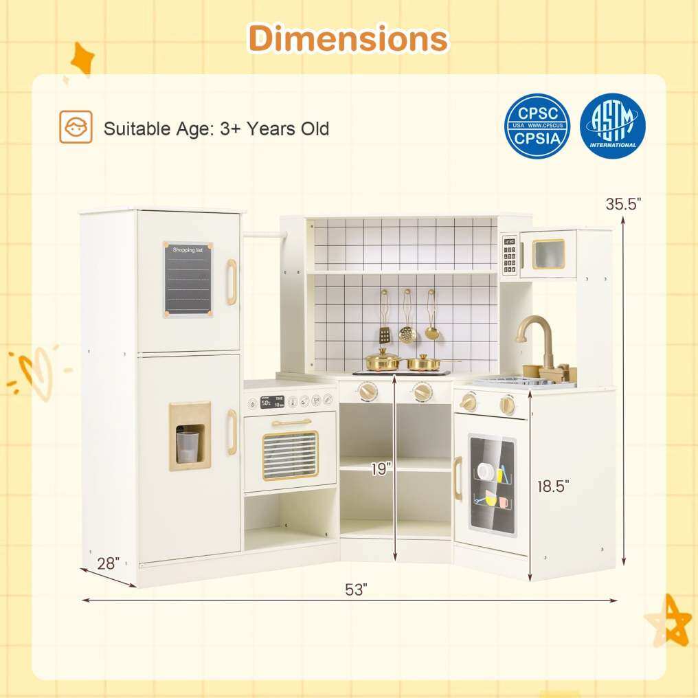 ● Child-friendly Design, Reliable Gift: Thanks to easy-grip pull handles and convenient door stoppers, the cabinets are easy to open or close. And the sturdy MDF construction with smooth rounded edges is built to last. Compliant with ASTM and CPSIA, this corner play kitchen will be a nice gift choice for growing children.