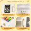 ● Large and Classified Storage Space: Designed for organized play, the kitchen playset includes 1 hanging bar, 3 hanging hooks, 4 open shelves, and 5 enclosed cabinets. These multiple storage compartments offer a practical solution for storing toys and accessories, encouraging children to maintain a neat play environment.