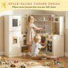 ● Corner Play Kitchen for Any Space: Specifically crafted for efficient use of space, the corner kids play kitchen fits perfectly in playrooms, kindergartens, and nursery care. Its space-saving corner design ensures there's always room for fun, even in areas with limited square footage.