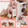 ● More Areas for Added Fun: To enhance overall delight, this corner play kitchen for kids comes with a range hood, microwave, sink with faucet, oven and dishwasher, all designed to simulate real-life kitchen activities. The addition of a curtain and washing machine adds layers of interactive joy.