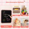 ● Immersive Kitchen Play Scenes: The interactive wooden kids playset boasts a lifelike 2-door fridge, including 3 left door shelves, 2 removable shelves, an egg stand, a right door shelf and a freezer. Moreover, the pull-out trash bin has a round access, cut-out handle, door and door lock, mimicking real kitchen scenes.