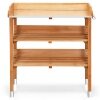 Made of solid wood and metal sheet, the work station is durable and sturdy. With a hook, the work station can hang garden tools. The three shelves are provided for storing potting tools, seeds and other tools. The feet of the work station are covered by galvanization, protecting the feet from rotten.