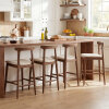● Rustic Farmhouse Style: Featuring walnut wood grains paired with light brown seat cushions, these wood barstools boast a charming farmhouse style that complements a wide range of living spaces.