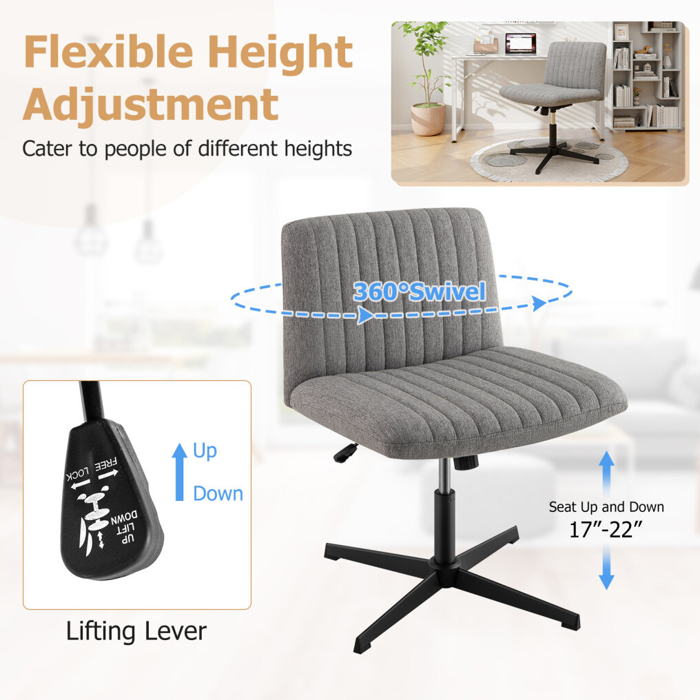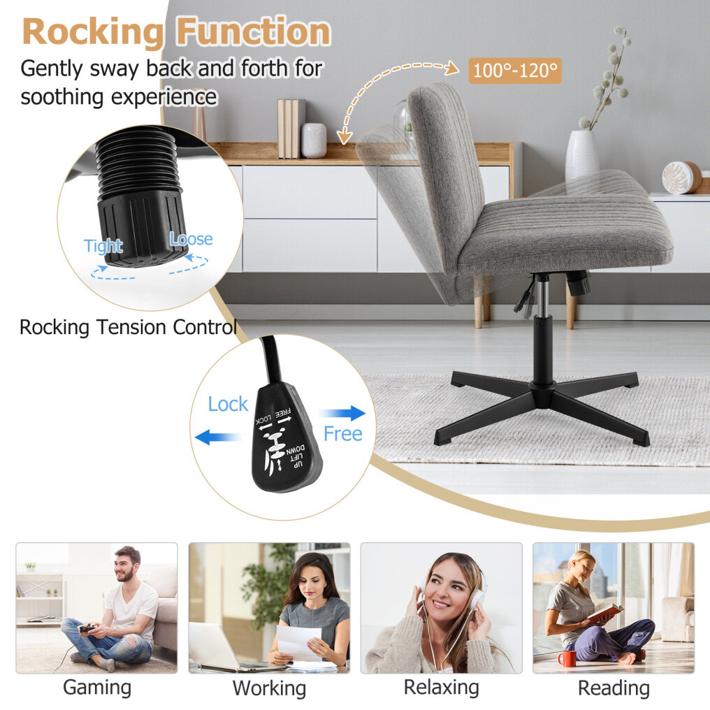 ● Multiple Adjustable Design: Featuring 120° rocking function, the cross legged chair provides a soothing motion to keep you relaxed and stay focused. The home office chair offers a height range from 17" to 22" and 360° swivel design for customized sitting experience.