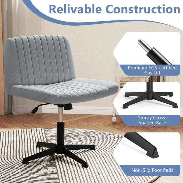 ● Built to Last and Be Safe: Crafted with a sturdy cross-shaped metal base and non-slip foot pads, this armless office chair is rock-solid. The SGS-certified gas cylinder ensures smooth, safe lifting, and it can handle up to 350 lbs—so you can sit back and relax with confidence!