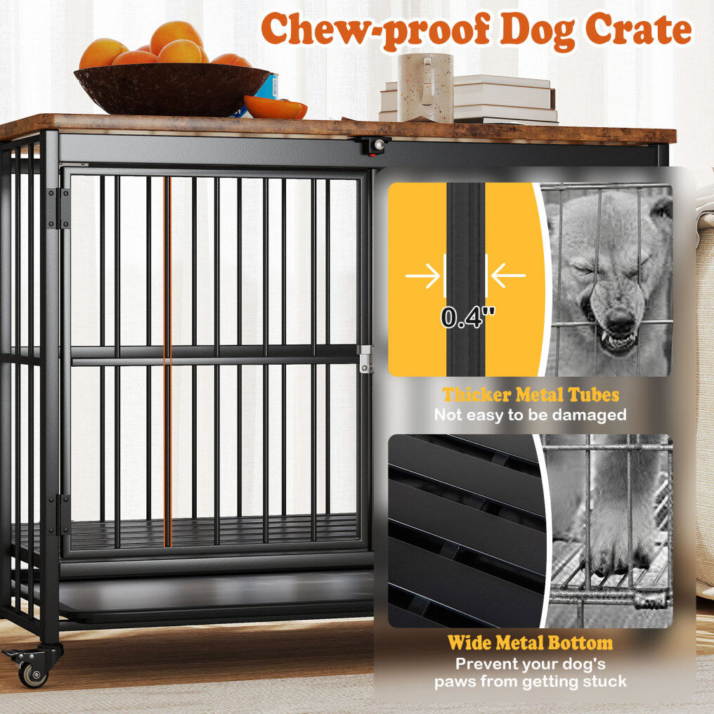 ● Robust Anti-chew Structure: Constructed from 0.4" thick metal tubes, the dog crate boasts enhanced durability and resistance to chewing or bending. Plus, it features a broader slatted bottom which mitigates the risk of pets' paws becoming trapped, unlike traditional wired bottoms.