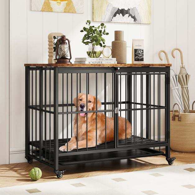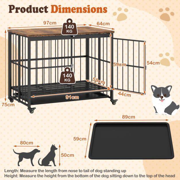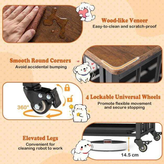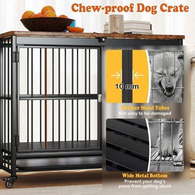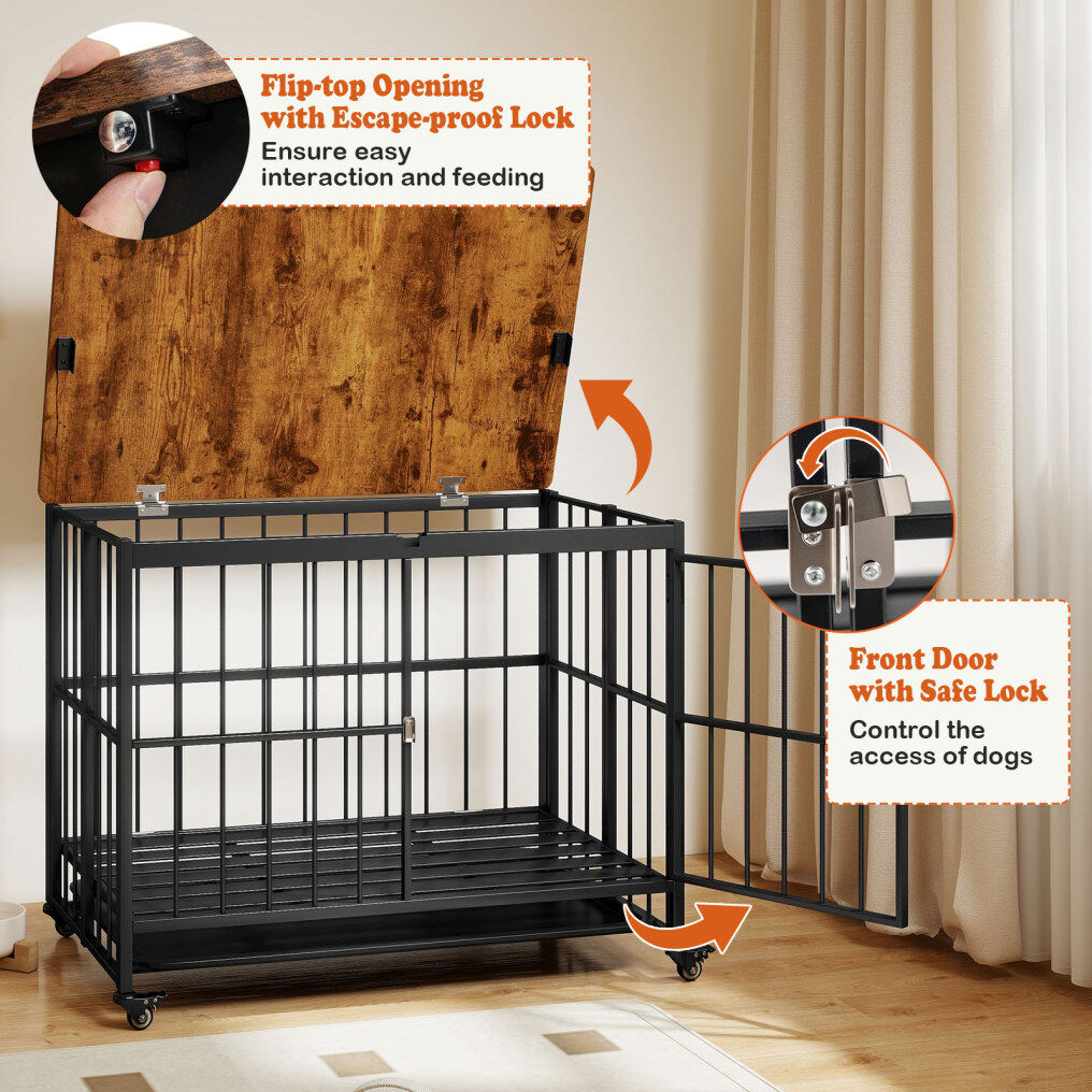 ● Flexible Movement: Equipped with 4 universal wheels, users can effortlessly relocate the pet house across the room. Moreover, each wheel features a brake to prevent the heavy-duty dog cage from moving when being stopped in place.