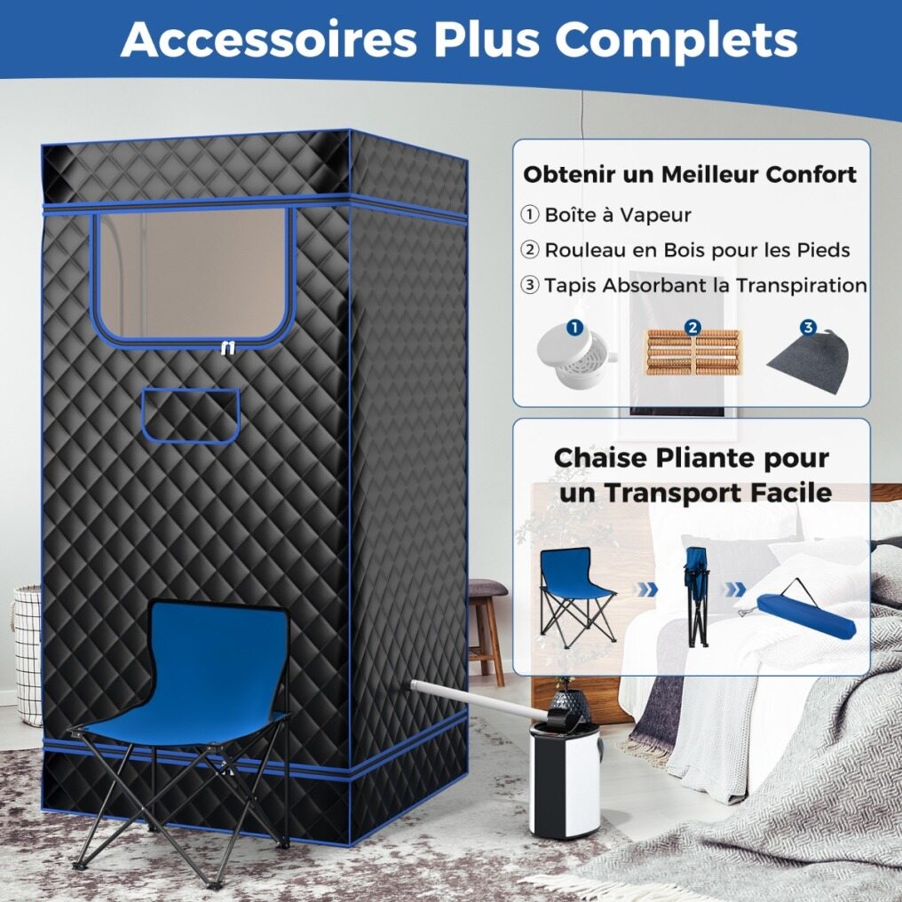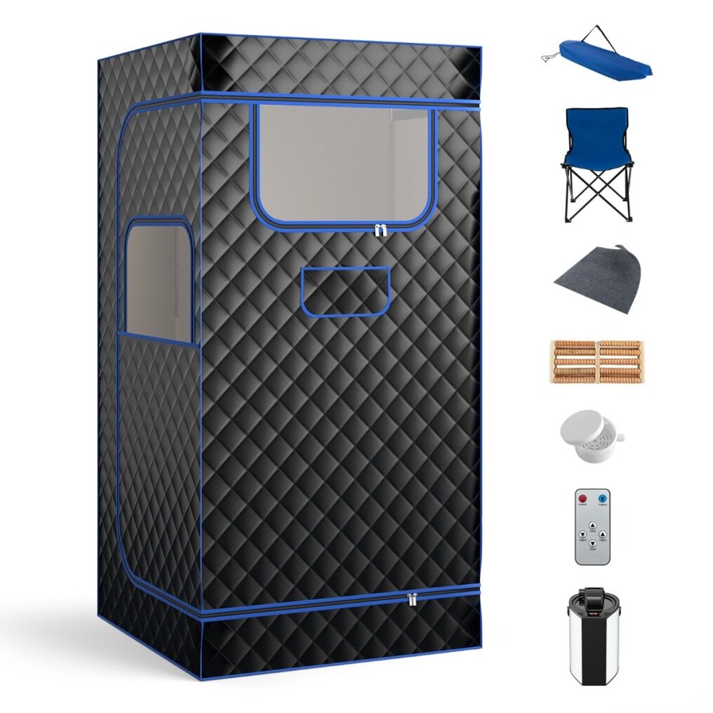 This sauna tent can be controlled with the remote control or smart panel to set the temperature and timer. 3L steam generator with stainless steel pot, allows you to add ingredients. Misting function improves mist absorption. Unlocked 2-layer tempered glass cover, overheat protection and no dry heating, provide safety. 4-layer waterproof tent has zippered windows and door for good air circulation and easy access. Additional accessories are included.