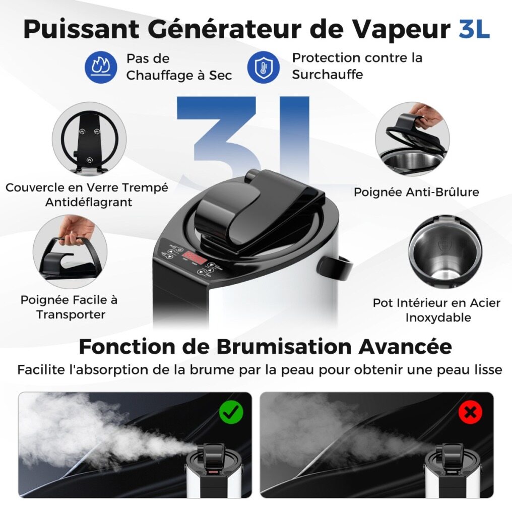 The powerful 3L steam generator features a stainless steel inner pot for long-lasting use