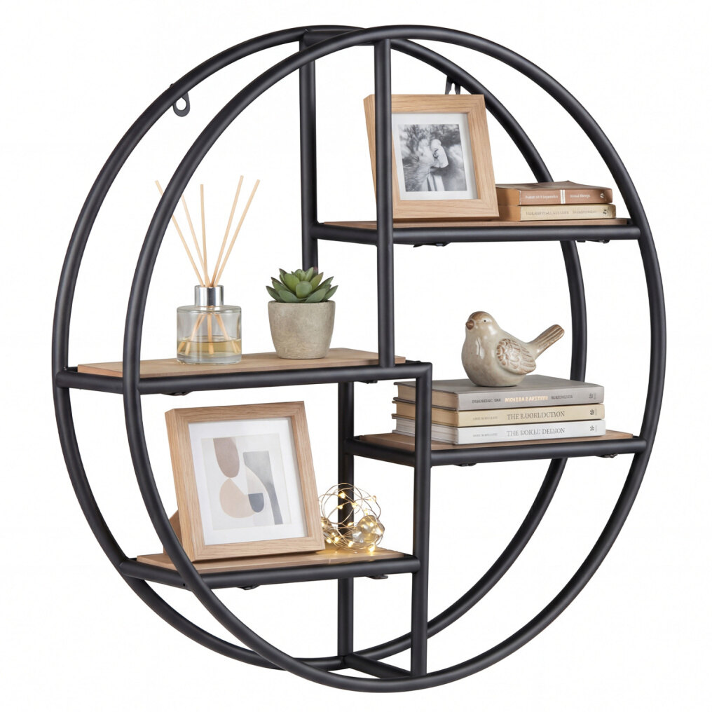● Elegant Circular Design: Featuring a stylish circular shape with beautifully textured wooden shelves, this floating shelf effortlessly blends modern geometric aesthetics with natural charm. It's perfect for enhancing the decorative appeal of your room.