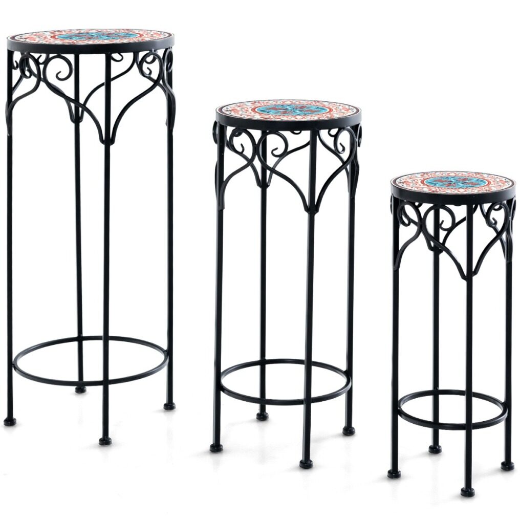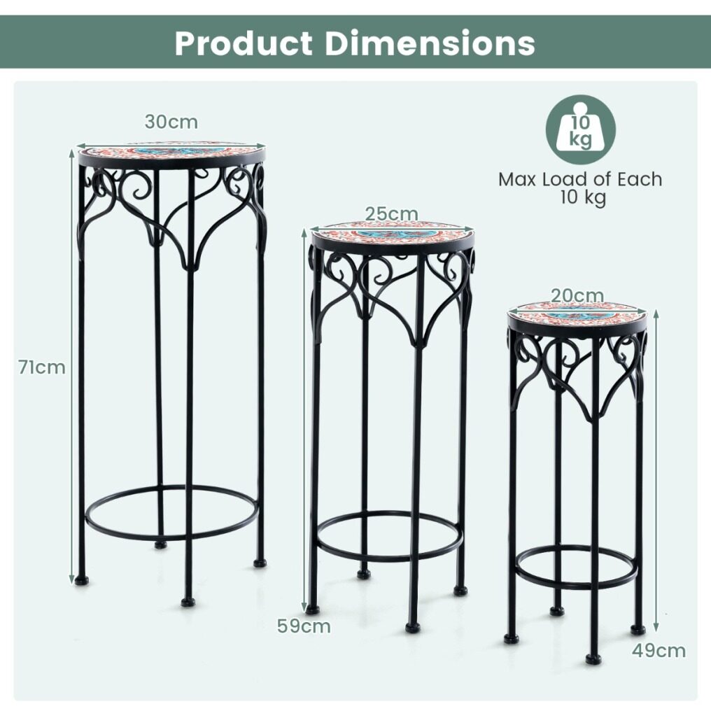 ● Elegant Plant Stand in 3 Sizes: The mosaic plant stand comes with 3 sizes: (Large) 12"x28", (Medium) 10"x23.5", (Small) 8"x19.5", offering various placement options. And exquisite decorative patterns on the top will make it an attention-grabbing focal point.