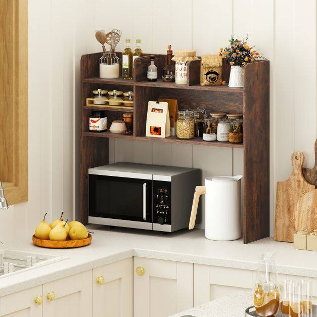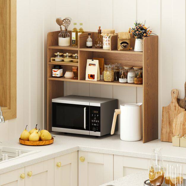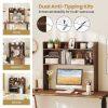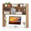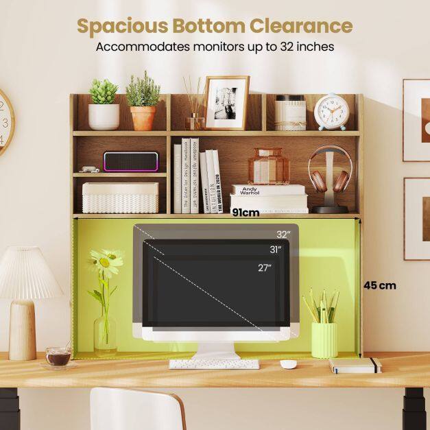Featuring 3 upper shelves, 2 side compartments, and a spacious open compartment, the desktop bookshelf is perfect for keeping all your essentials from books to decoration items neatly organized. Designed to maximize your desk space, the storage organizer comfortably fits monitors up to 32 inches, making it ideal for dorms or any small space. Additionally, a 3-position shelf, rounded corners and 2 anti-tipping devices ensure both flexibility and safety, enhancing your working environment. With its sleek dimensions and modern design, this bookshelf is not only functional but also adds a touch of elegance to any room, be it your office, bedroom, or kitchen. Elevate your space and productivity with this all-in-one solution!