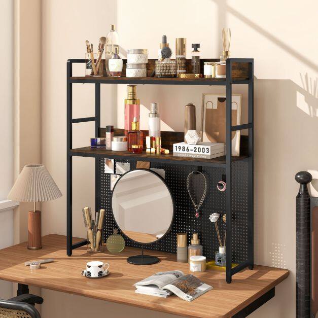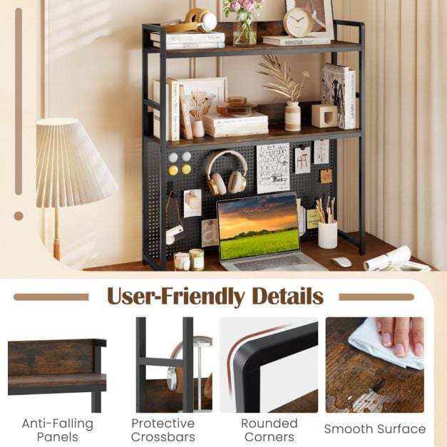 Customizable Storage: Equipped with a multifunctional pegboard at the back, the desk hutch allows for DIY storage solutions. You can hang headphones, keys, game controllers, or display photos. Note that hooks are not included.