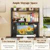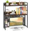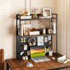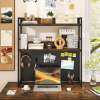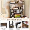 Aesthetic Appeal: With a rustic wood grain finish and a matte black frame, the 2-tier hutch shelf adds an industrial flair to your space. It serves as the perfect organizer for a computer desk, a gaming table, or a coffee bar counter.