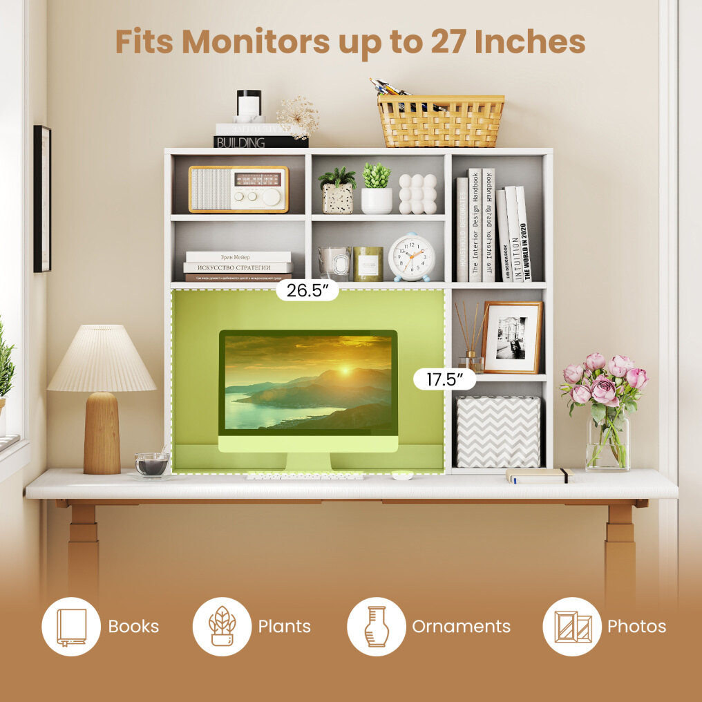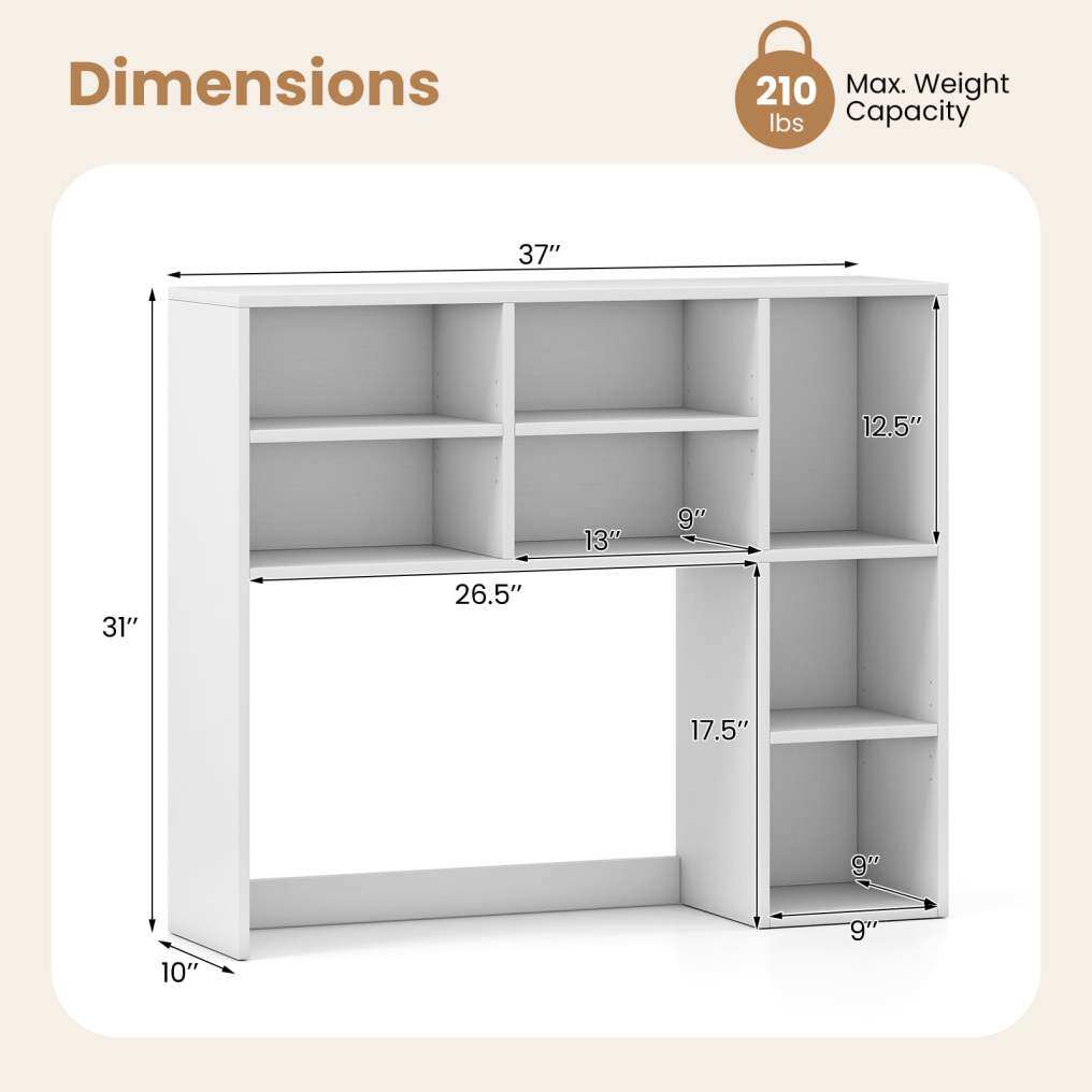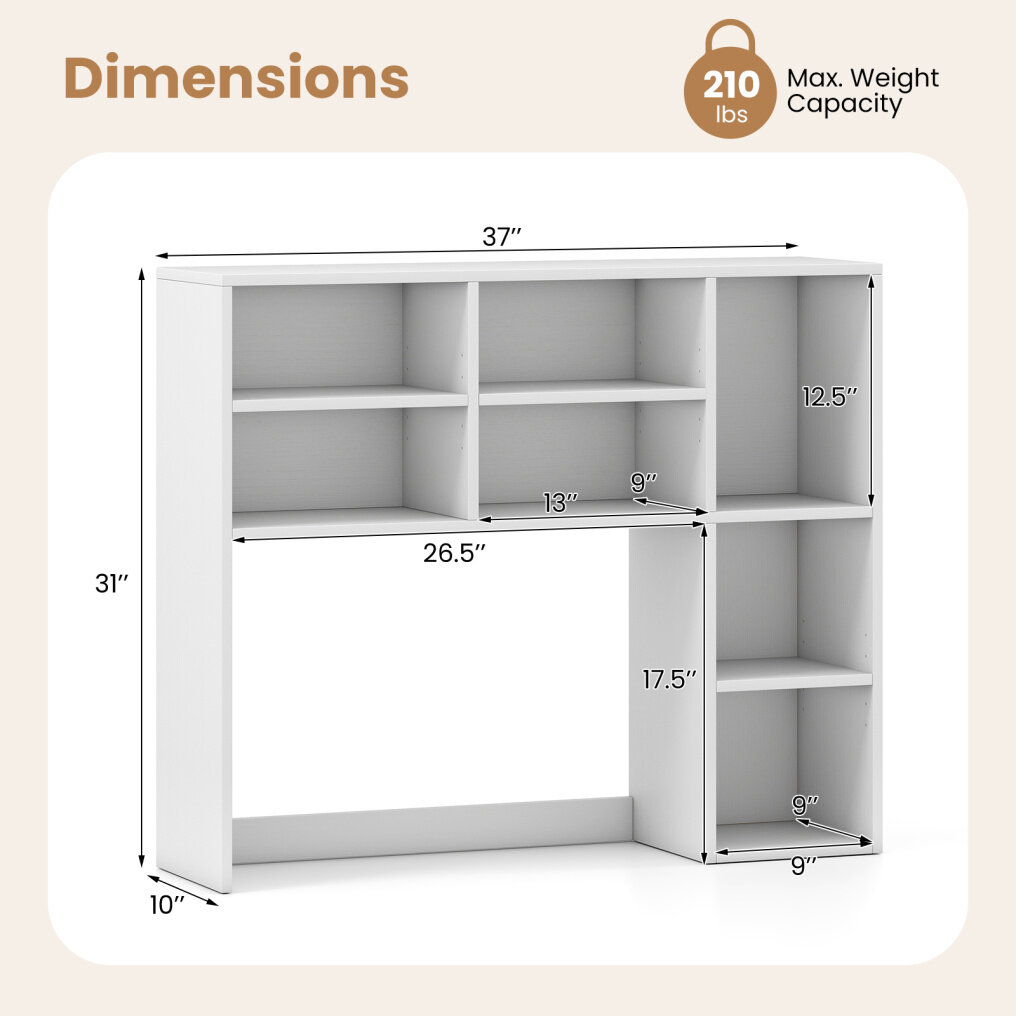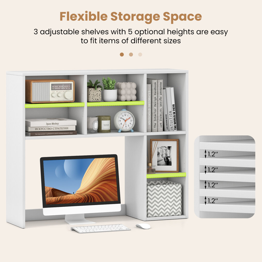 ● Flexible Storage Space: The desk bookshelf features a spacious top shelf and 7 open cubbies that provide sufficient storage and display options for daily supplies. Featuring 3 shelves that can be set in 5 positions within 1.2", this desk storage hutch adapts easily to items of various sizes.