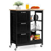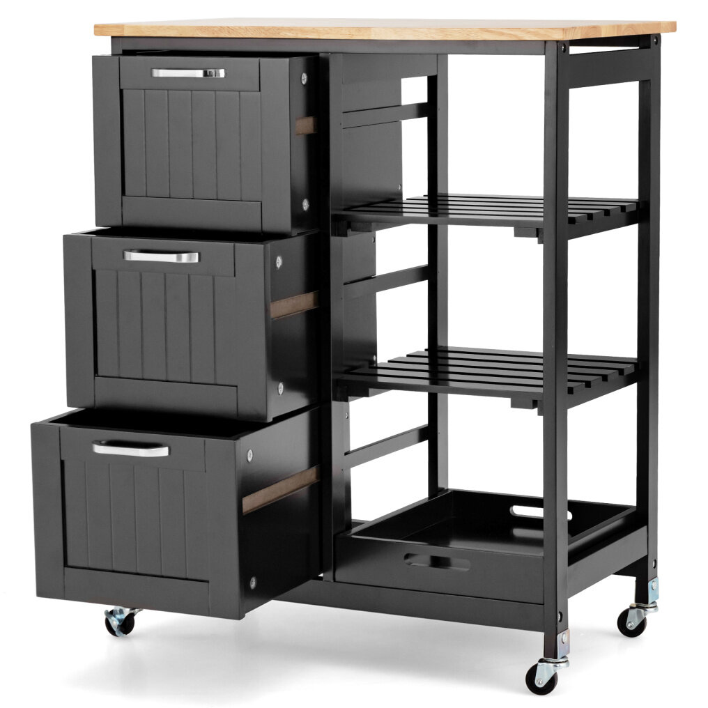 Plenty of Storage Space: This mobile kitchen island is designed with a spacious countertop, 3 pull-out drawers, a removable tray and 2 open shelves, which offer ample storage space to keep the kitchen tidy and clean. The countertop is ideal for food prepping , while the lower part is perfect for classifying kitchen supplies.