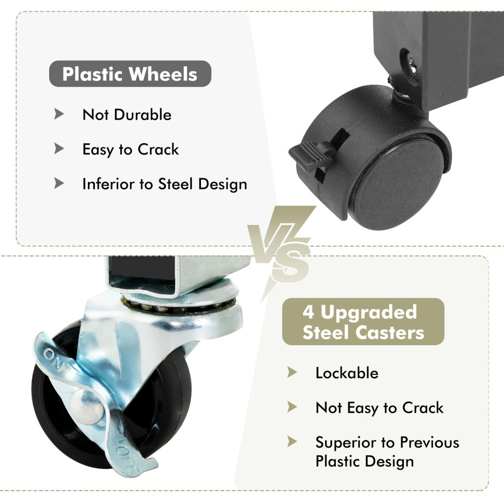 Effortless Mobility & Safe Parking: The kitchen serving trolley is equipped with 4 heavy-duty steel universal casters, so you can move the cart anywhere you want to relocate it. Additionally, 2 of the casters are lockable. Once it is in position, just step on the brakes to keep the trolley stable.