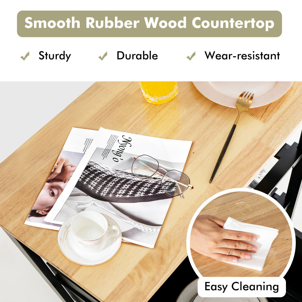 Solid Structure for Years of Use: The rubber wood countertop and solid wood frame endow the utility storage cart with remarkable sturdiness and stability, providing you with long service time. The painted surface is smooth and waterproof, which makes daily maintenance much easier.