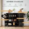 Perfect storage solution: Three drawers and a large cabinet with height-adjustable shelves for storing and sorting dishes, cutlery, pots and pans, etc. keep dust away while preventing damage. There are spice racks and towel racks on each side.