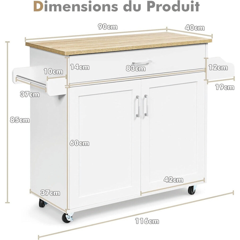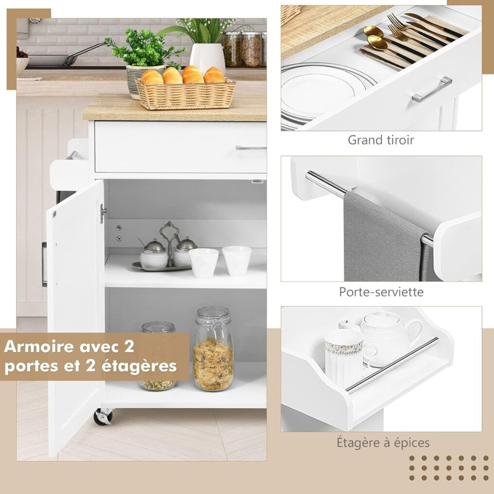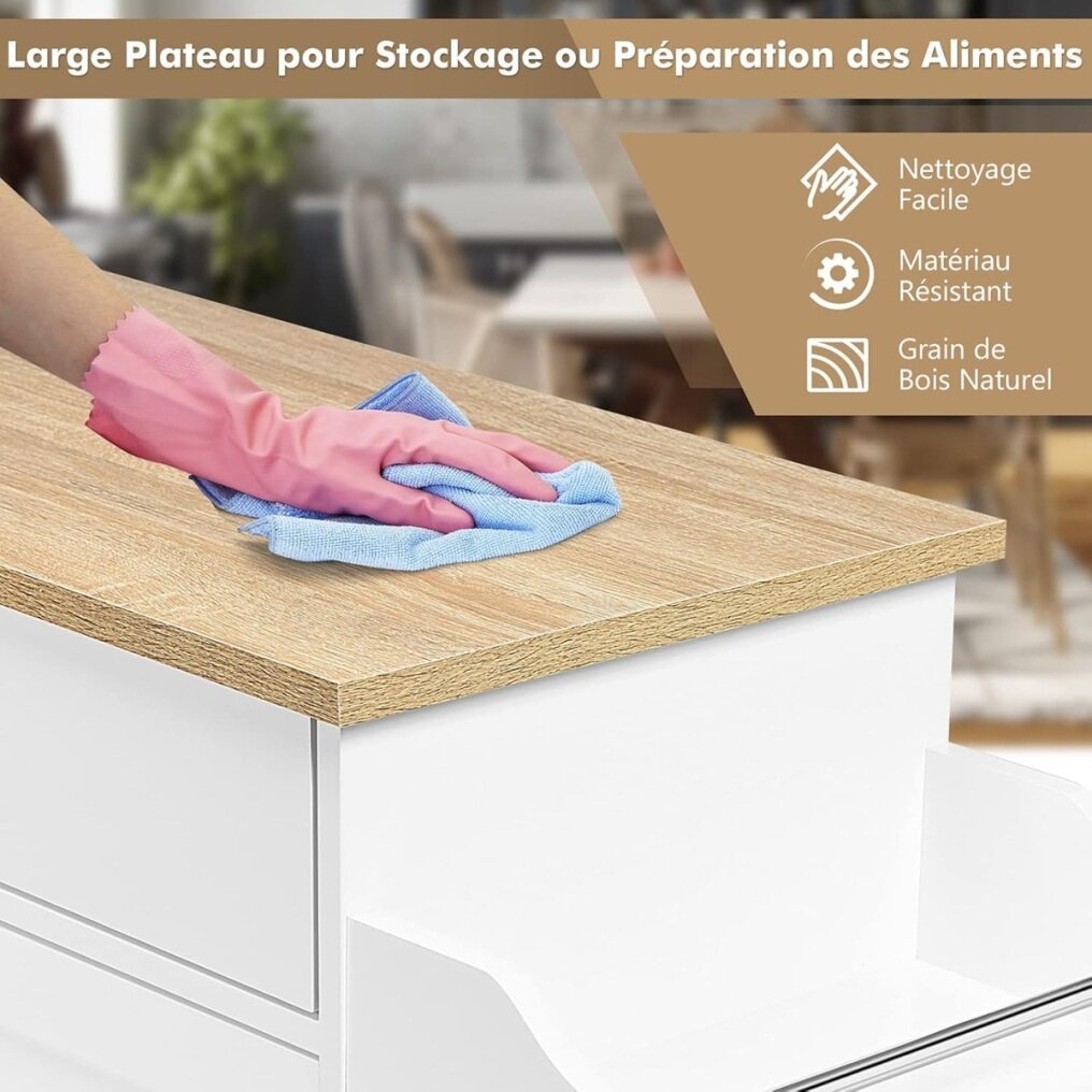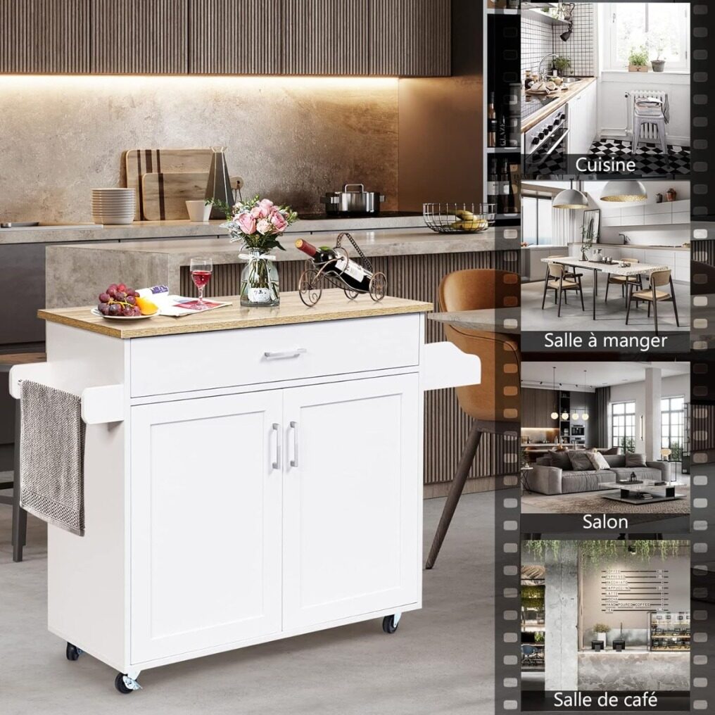 【High Quality Materials】Made of MDF and particle board, this kitchen trolley has a solid construction and a smooth, wear-resistant surface.
