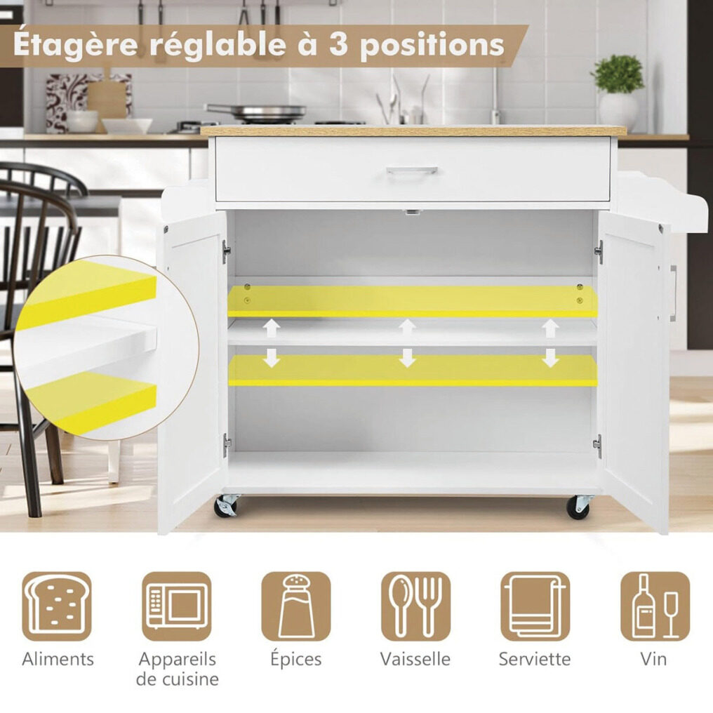 【Large Storage Space】The large drawer and cabinet of our spacious kitchen trolley allows for the storage of various utensils, cutlery and glassware, and the shelf in the cabinet can be adjusted to 3 positions.