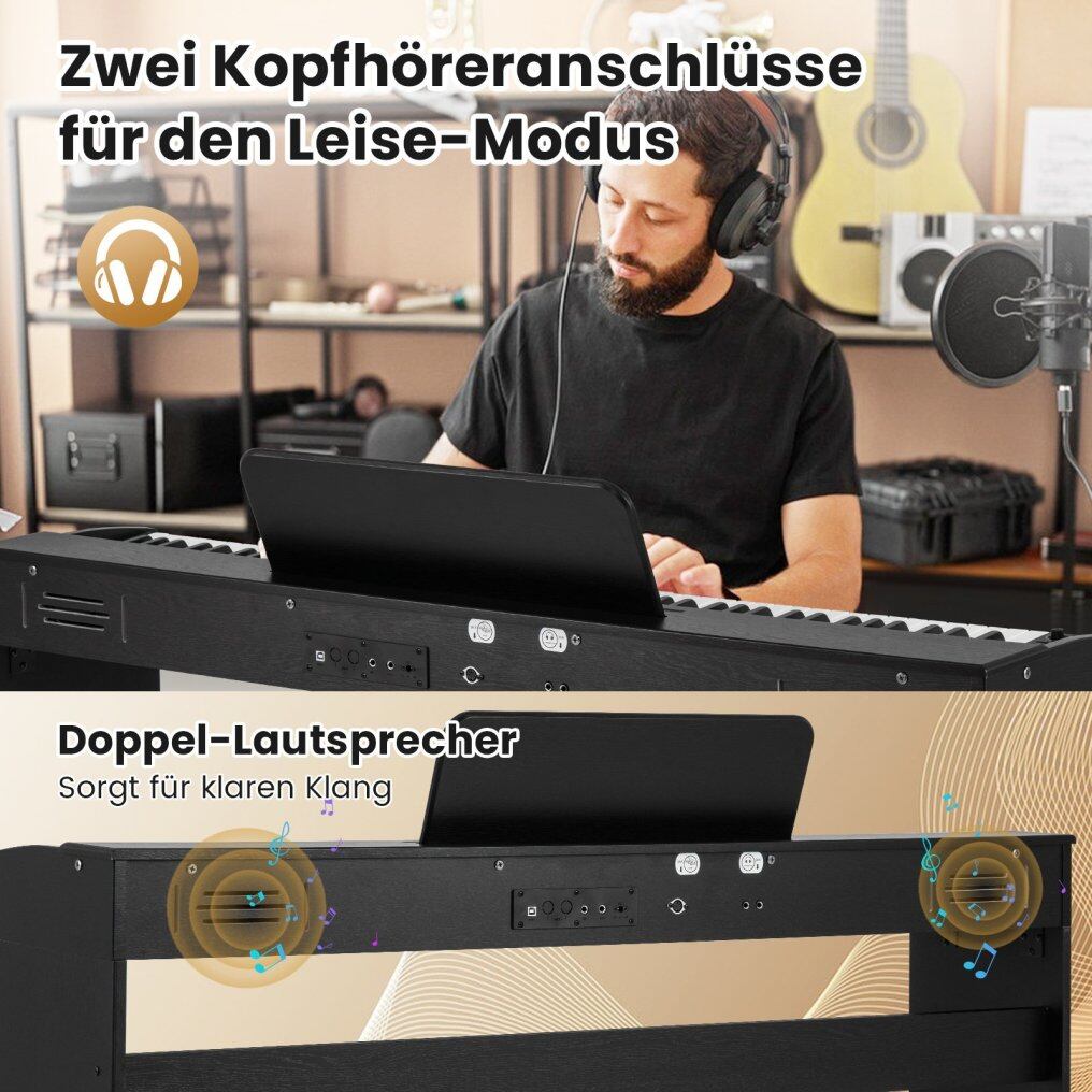 Dual Speakers & Headphone Jacks: Dual speakers deliver clear, stereo sound. Additionally, the dual headphone jacks not only allow you to share music with friends but also ensure quiet practice without disturbing others.