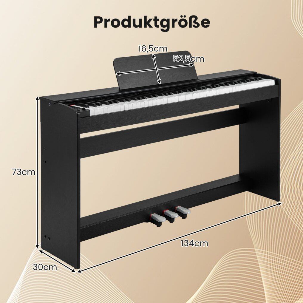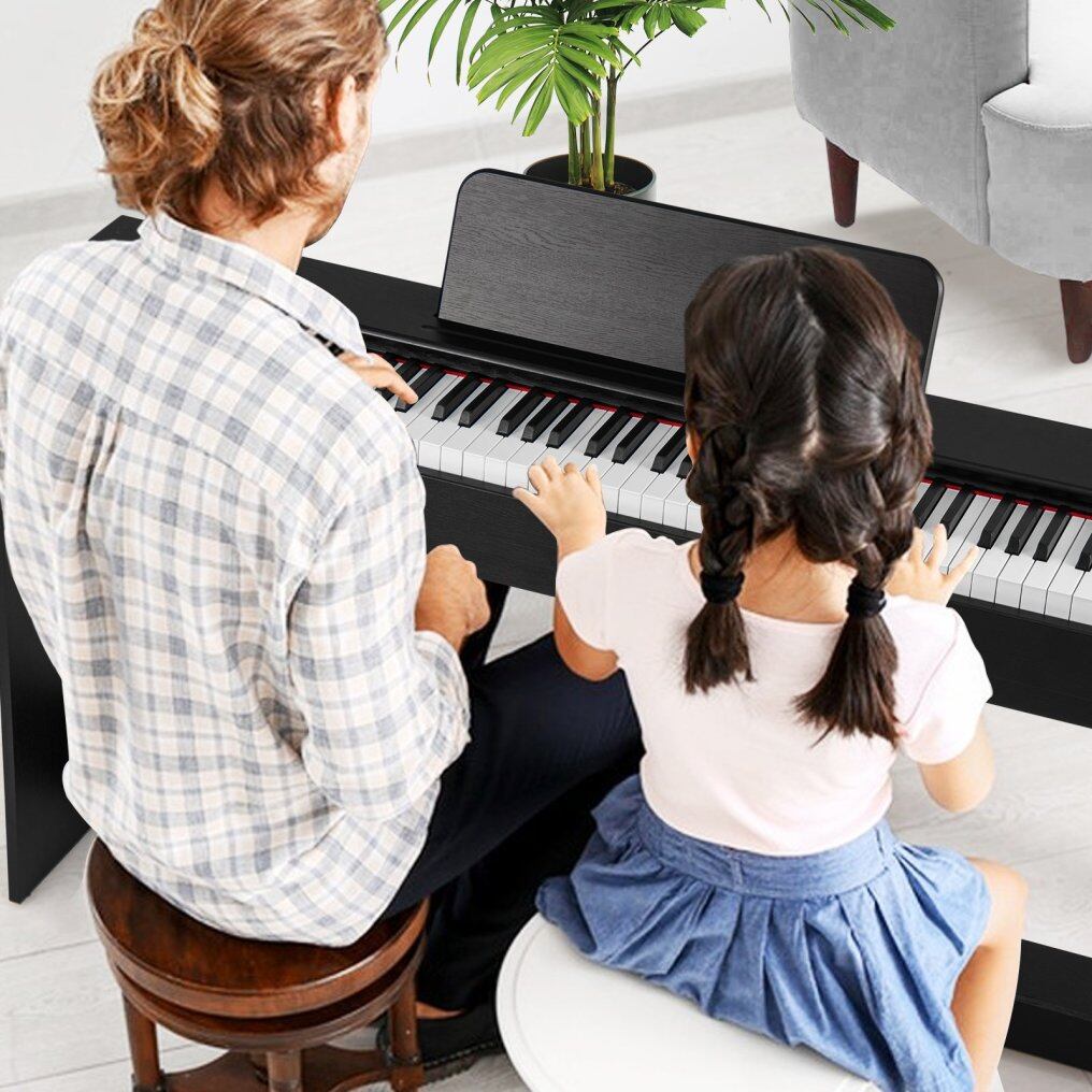 88 Fully Weighted Keys: 88 fully weighted hammer-action keys allow players to experience the feel of a traditional piano. The keyboard drums also provide additional fun. Furthermore, the built-in chips provide piano sound and pleasant melodies.