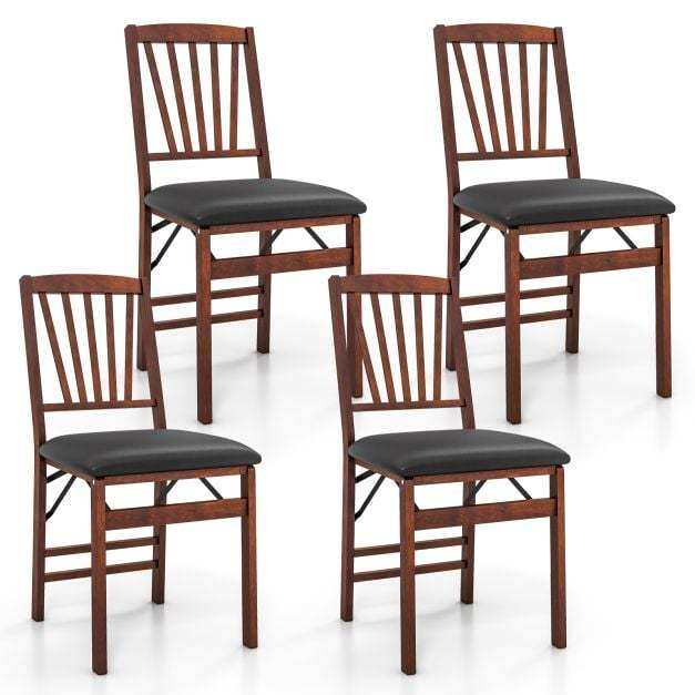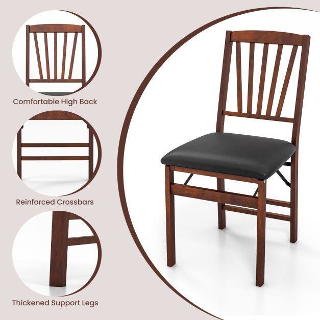 Crafted from solid rubber wood, the folding chair is deformation-resistant and built to last. Moreover, 4 thick legs is reinforced by crossbar to hold up to 180kg large weight. Besides, the folding chairs come with foam filled cushion, the soft & skin-friendly material is friendly for your hips. And the high backrest relives your fatigue. Hence, it is a good choice for a pleasant dining experience. Equipped with flexible hinge, you can easily fold and store the chairs after dining. And there are more outstanding details to show our quality. The black premium PVC leather and brown finished wood is easy-to-clean, while ensuring a vintage style. Therefore, the assembly-free folding chairs set is a good choice for your kitchen!