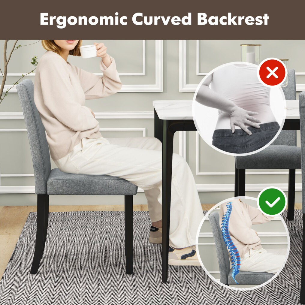 ● Upholstered Seat & Backrest: The wooden dining chair come with wear-resistant/ skin-friendly PU leather/linen fabric covered seat and backrest, ensuring comfy experience and a touch of elegance. Moreover, the soft and supportive sponge filling will reduce your fatigue.
