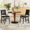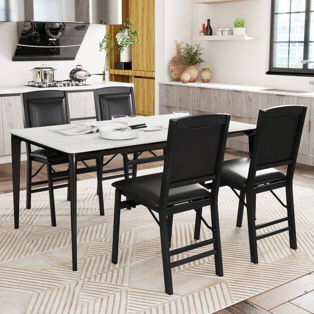 Crafted from solid rubber wood, the folding chair is deformation-resistant and built to last. Moreover, 4 thick legs is reinforced by crossbar to hold up to 400lbs large weight. Besides, the folding chairs come wit soft padded cushion to offer maximum comfort. Additionally, soft and comfortable high backrest will relax your body. Hence, it is a good choice for a pleasant dining experience. Equipped with flexible hinge, the dining chairs enable you to fold and store with ease. And there are more outstanding details to show its quality. The black premium PVC leather and brown finished wood is easy-to-clean, while ensuring a vintage style. Therefore, the assembly-free folding chairs set is a good choice for your kitchen!