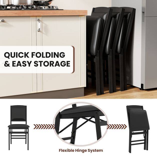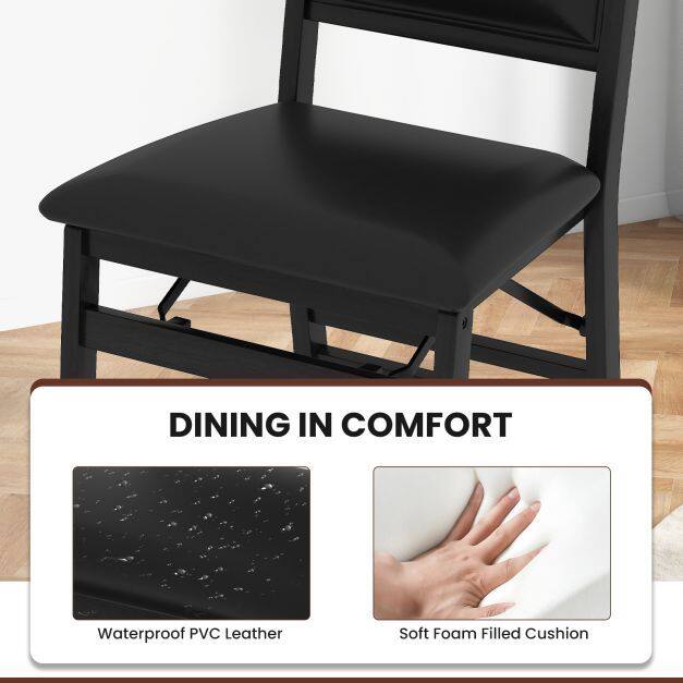 No Assembly and Easy Maintenance: The folding dining chairs are ready to use right out of the box. Moreover, the PVC leather and painted wood surface are easy to clean with a wet cloth, thus ensuring a long service life.