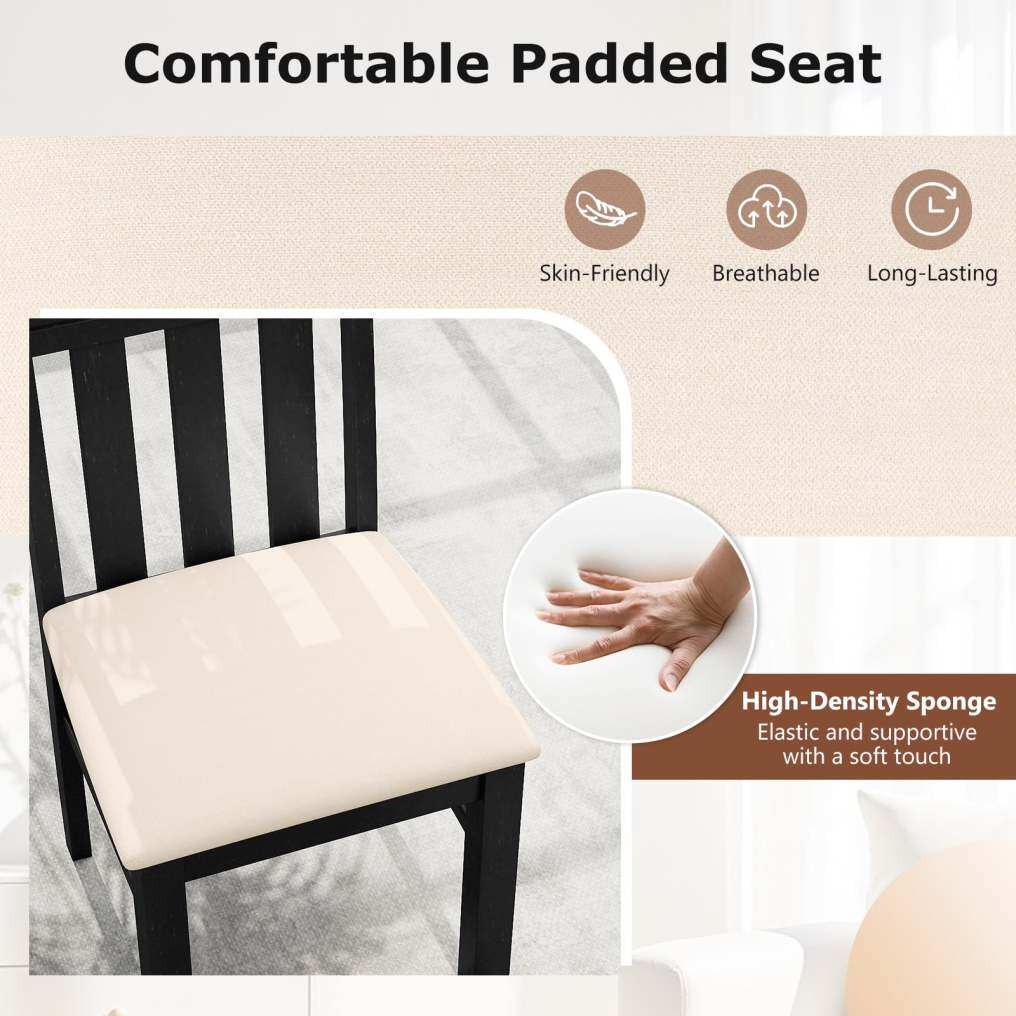 ● Rubber Wood Frame: Built to last, these kitchen chairs feature a sturdy rubber wood frame with thickened legs and extra crossbars for enhanced stability. Each chair reliably supports up to 330 lbs, making it a robust choice for family dining.