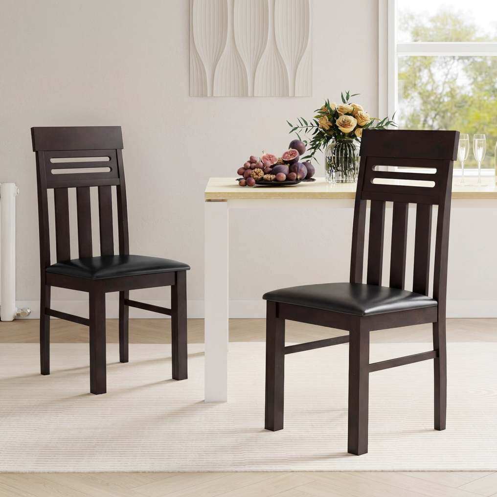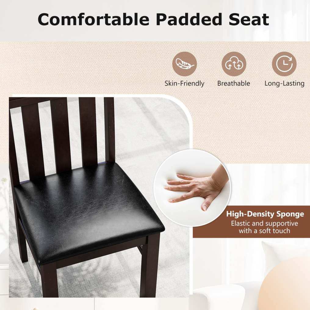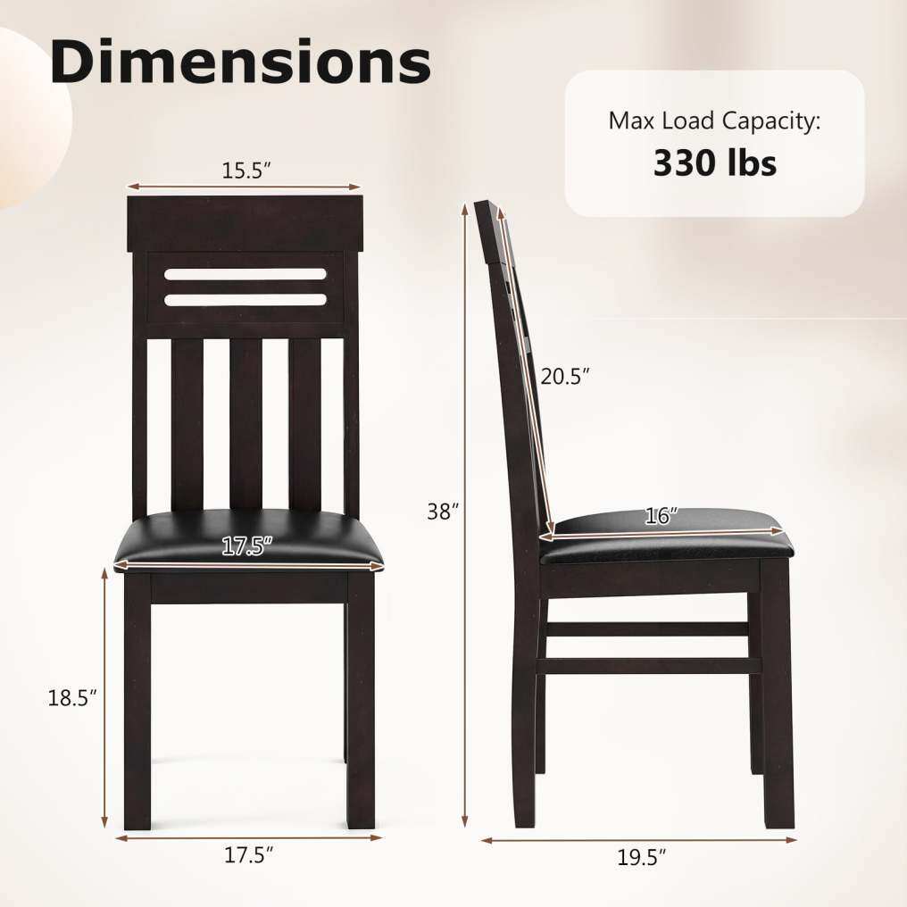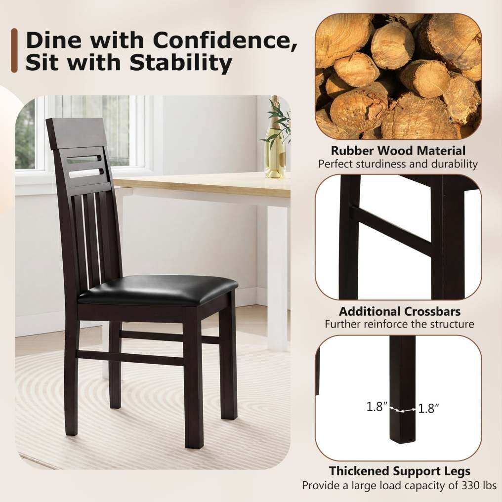 Rubber Wood Frame: Built to last, these kitchen chairs feature a sturdy rubber wood frame with thickened legs and extra crossbars for enhanced stability. Each chair reliably supports up to 330 lbs, making it a robust choice for family dining.