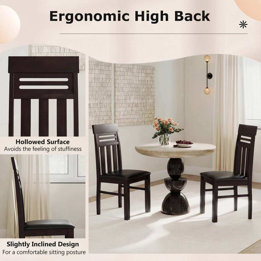 Ergonomic High Back: Experience exceptional comfort with the dining chair set's high backrest, carefully crafted with a hollowed surface and a subtle incline. This design supports your back, promotes good posture, and allows for excellent breathability.