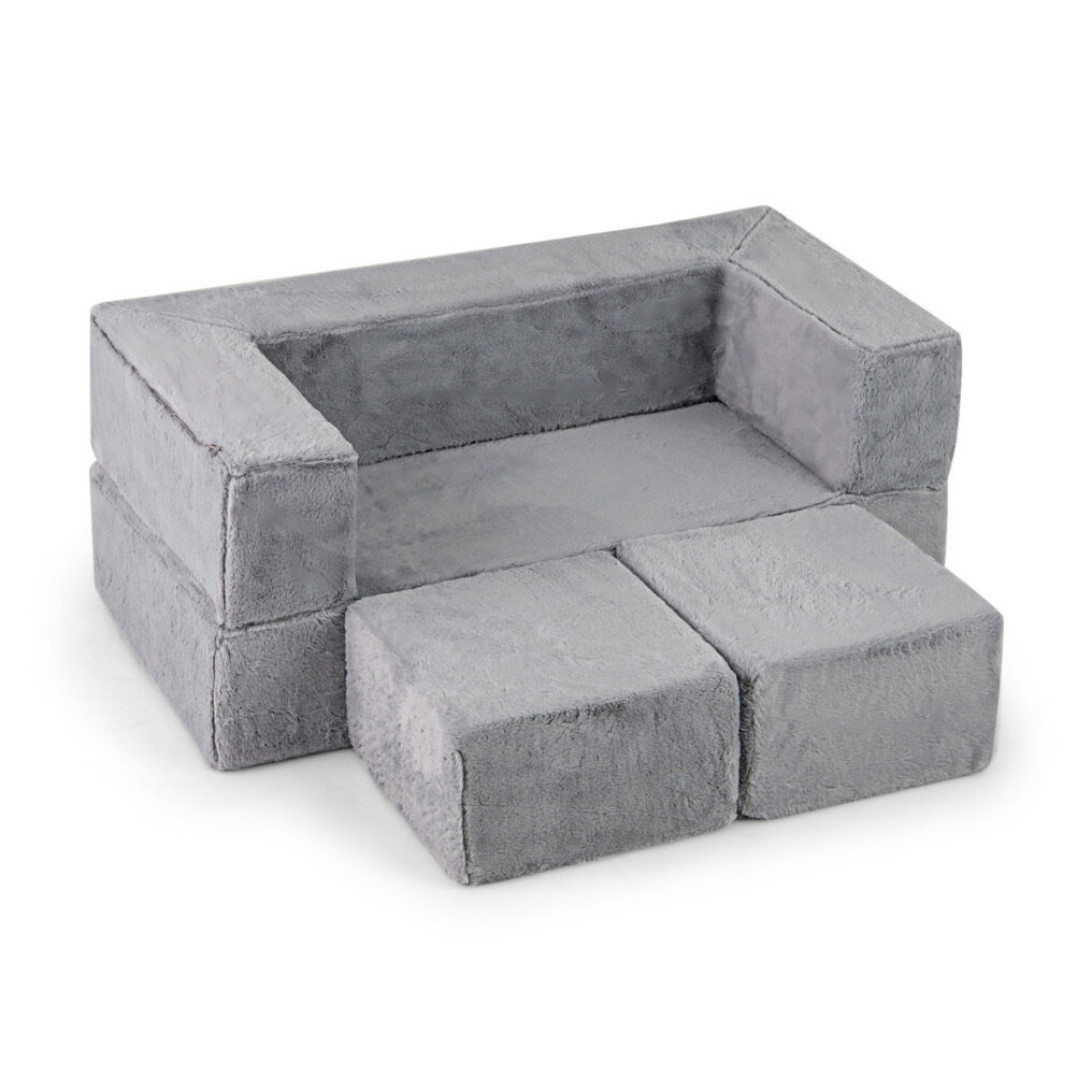 This foam sofa set will make the perfect gift for kids! Transforming into a sofa bed, puppet stage, fort, ball pit, or secret hideout, this modular kids sofa set becomes the perfect center for creative exploration. This versatile foam sofa set is perfect for a variety of activities, from reading and playing to resting, adapting to every scenario your child can imagine. Made of high-quality foam and covered in plush, this sofa ensures safety and comfort during active play.