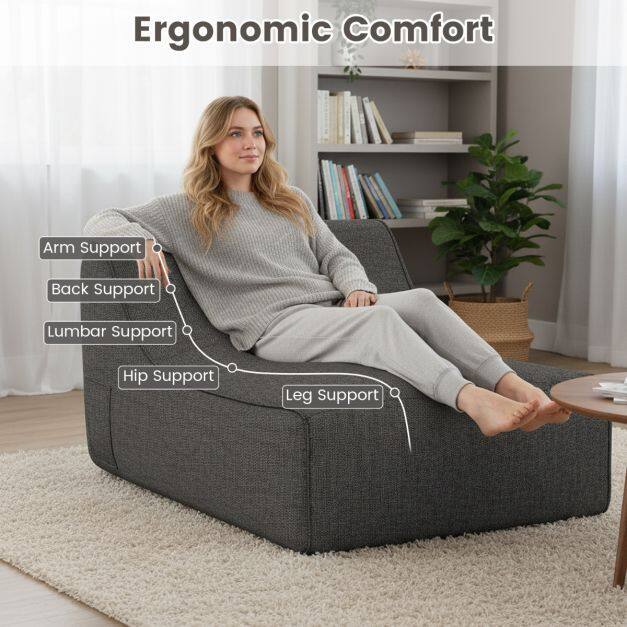Ergonomic Comfort: This L-shaped lounge chair is ergonomically designed to provide optimal support for your body, including your back, arms, lower back, hips, and legs. It's the perfect recliner for relaxing in style and comfort.