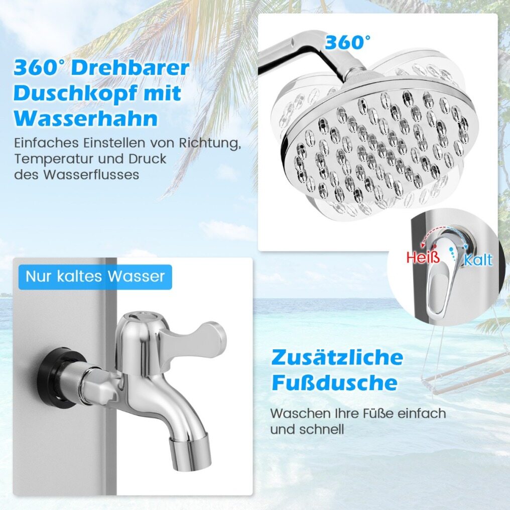 【Easy to Use】Featuring a 360° swivel shower head with a faucet, our outdoor shower offers superior control and flexibility and is easily adjustable to provide the best wash for all users. In addition, the additional foot shower makes washing your feet easy and quick.